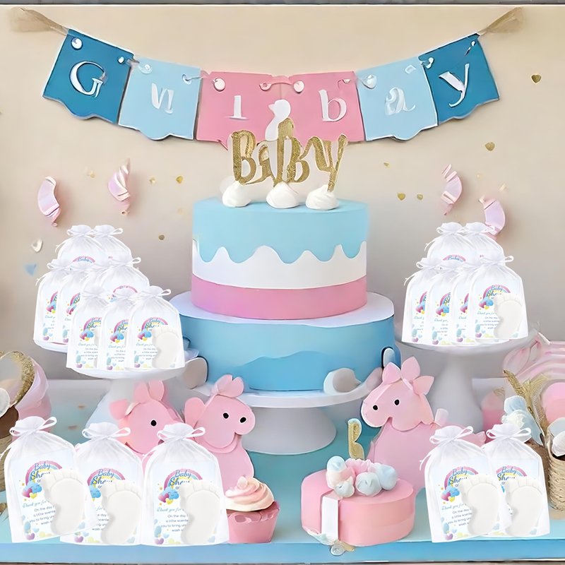 30 Sets Baby Shower Favors Refreshing Foot Soap Perfect Baby Shower Favors for Guests, Gifts, and Prizes with Organza Bags Thanks Cards (Blue)