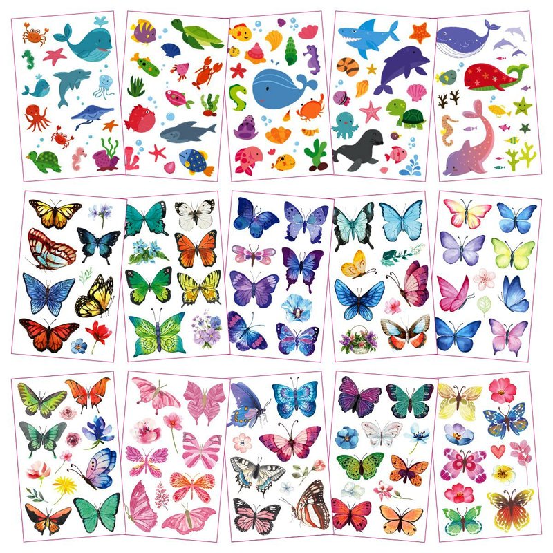 30 Sheets (360pcs) Butterflies、Mermaid、Sea Animals waterproof Temporary Tattoos For Kids,Mixed Styles Cartoon Tattoos,children's face tattoo Stickers, girls temporary tattoos,party makeup gifts