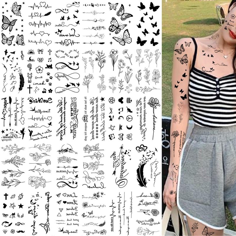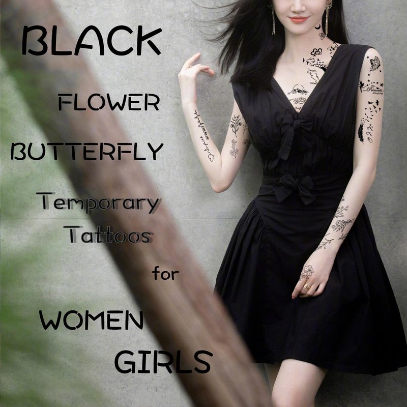- VARIETY OF STYLISH DESIGNS: Enjoy 30 sheets of black temporary tattoo stickers for girls, featuring beautiful butterfly water transfer designer patterns that last 3-5 days. Each sheet measures 3.8” x 2.2”.