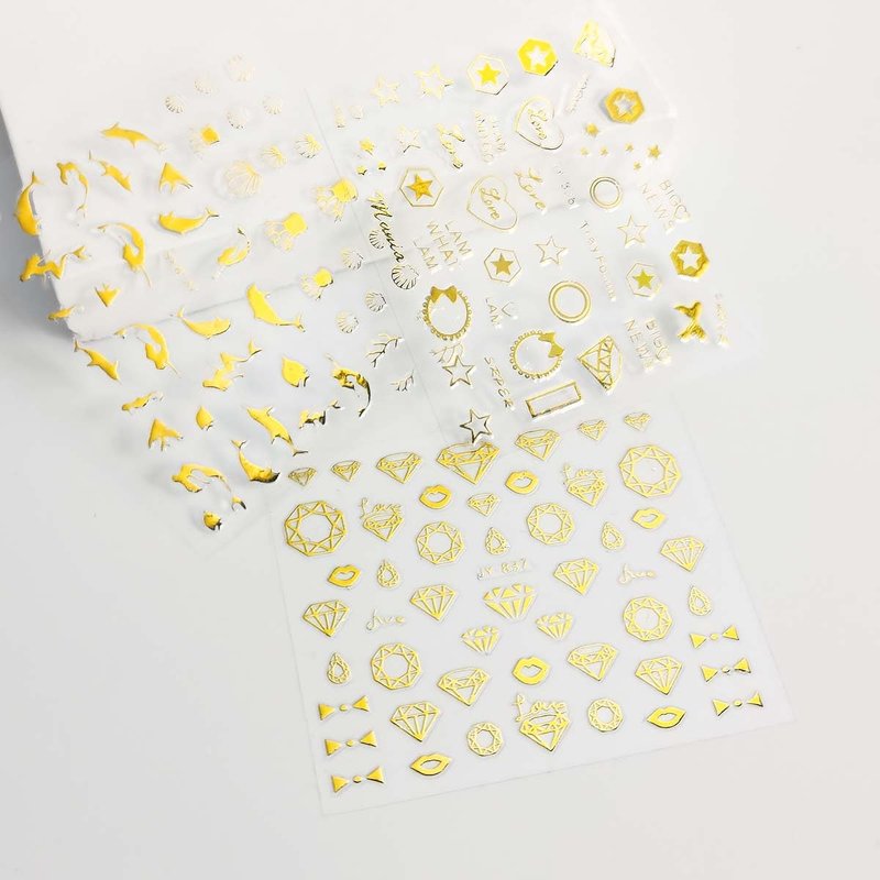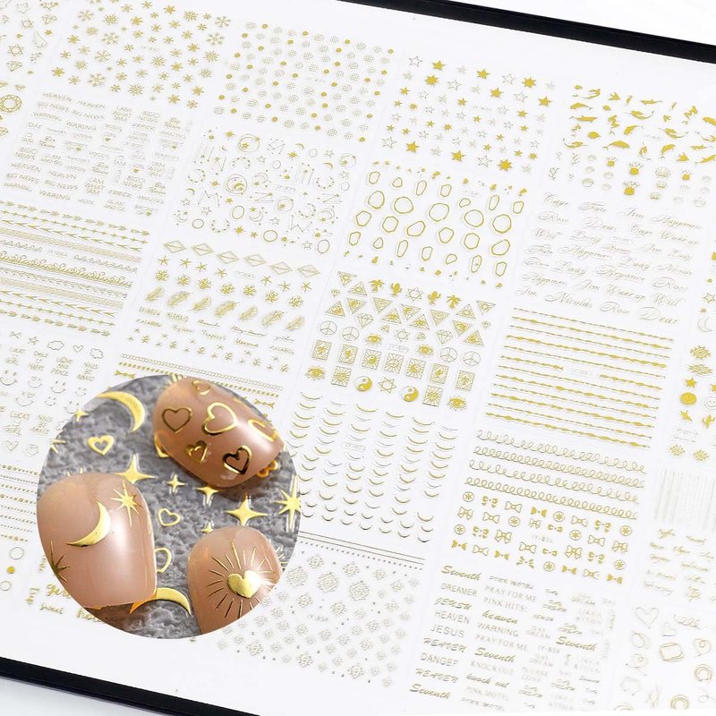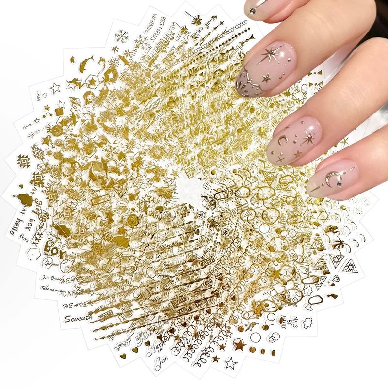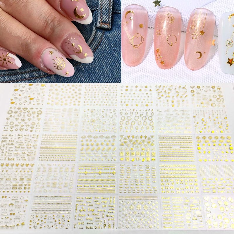 - Package Contain: A pack contains 30 sheets heart nail decals with moon,star,diamond,heart designs.Large number of different gold nail decals for you to use and replace in daily life and bring you a different mood