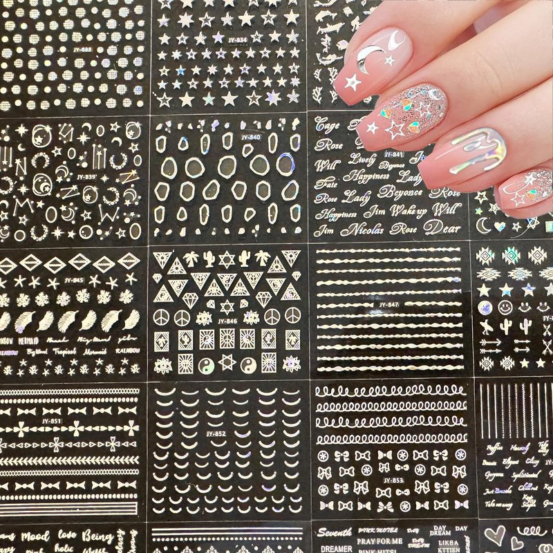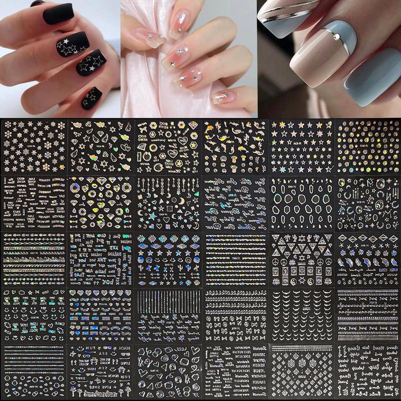 30 Sheets Silver Nail Art Stickers Aurora Silve...