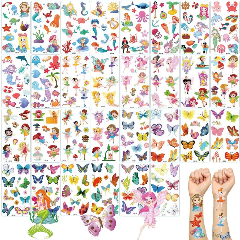 30 Sheets Temporary Tattoos Kit, 286Pcs Fake Cute Tattoo Stickers Waterproof, Birthday Party Favor (Mermaid & Flower Fairy & Butterfly)