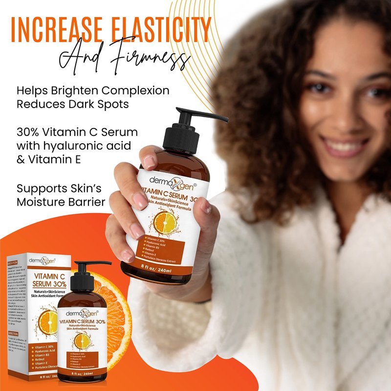 - ELASTICITY EMBRACED, YOUTH RECAPTURED: Dermaxgen's VC 30% serum boasts quick-absorbing, gentle, and non-greasy natural ingredients. Elevate hydration and barrier function, retaining youthful softness. Our serum, enriched with VC, VE, and HA, synergistically penetrates the skin's depths, neutralizing signs of aging. Embrace elasticity, maintain hydration, and relish the touch of revitalized skin.