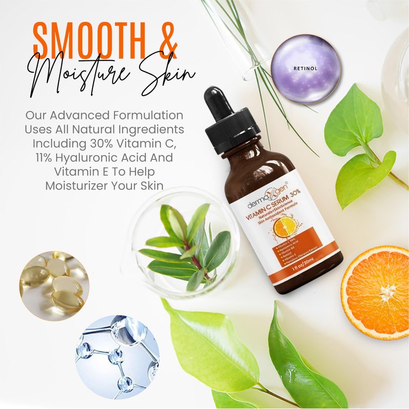 - ELASTICITY EMBRACED, YOUTH RECAPTURED: Dermaxgen's VC 30% serum boasts quick-absorbing, gentle, and non-greasy natural ingredients. Elevate hydration and barrier function, retaining youthful softness. Our serum, enriched with VC, VE, and HA, synergistically penetrates the skin's depths, neutralizing signs of aging. Embrace elasticity, maintain hydration, and relish the touch of revitalized skin.