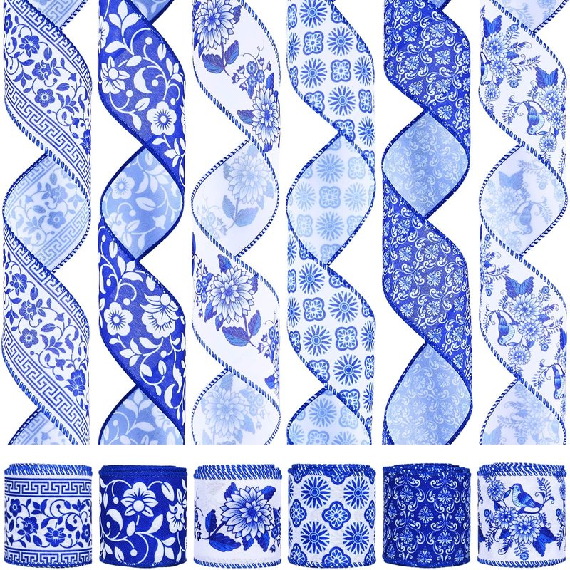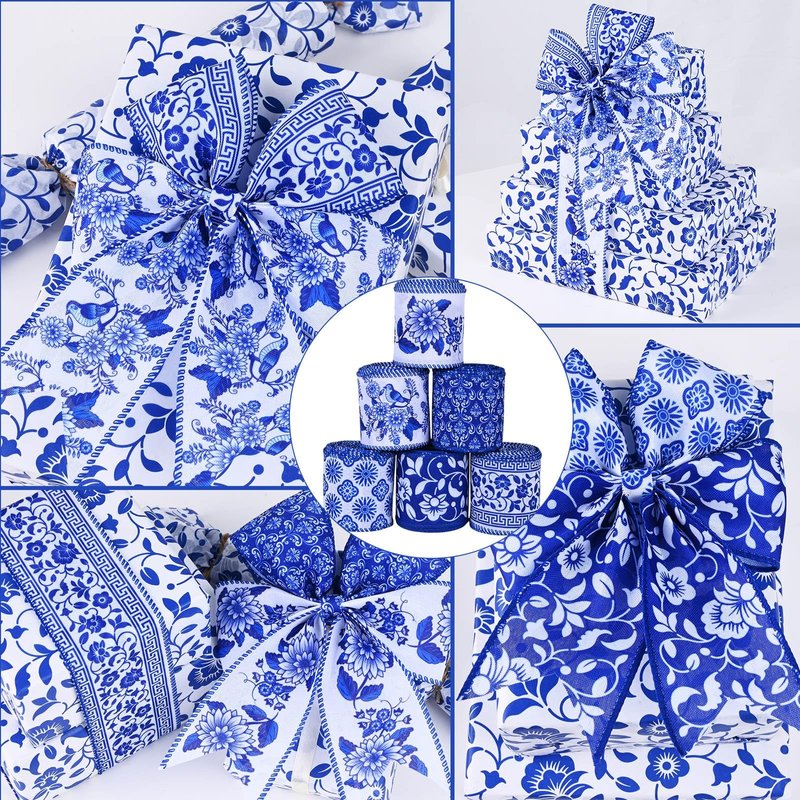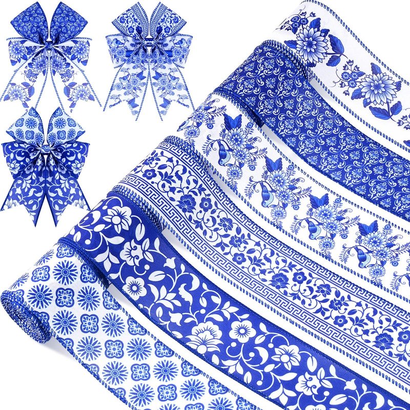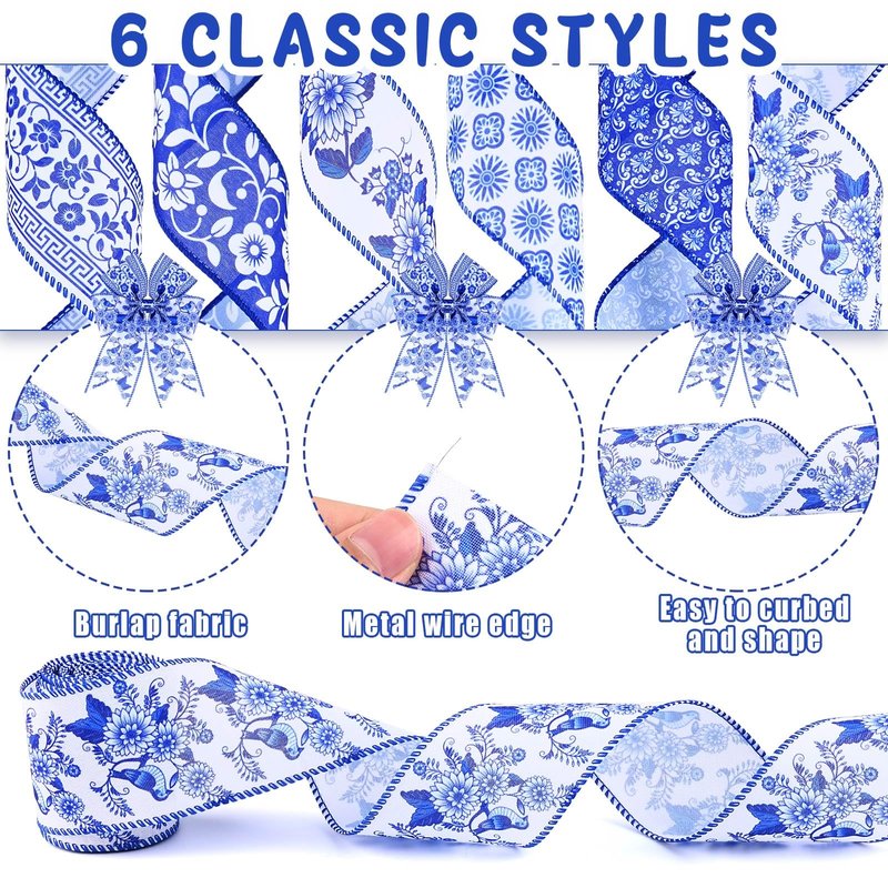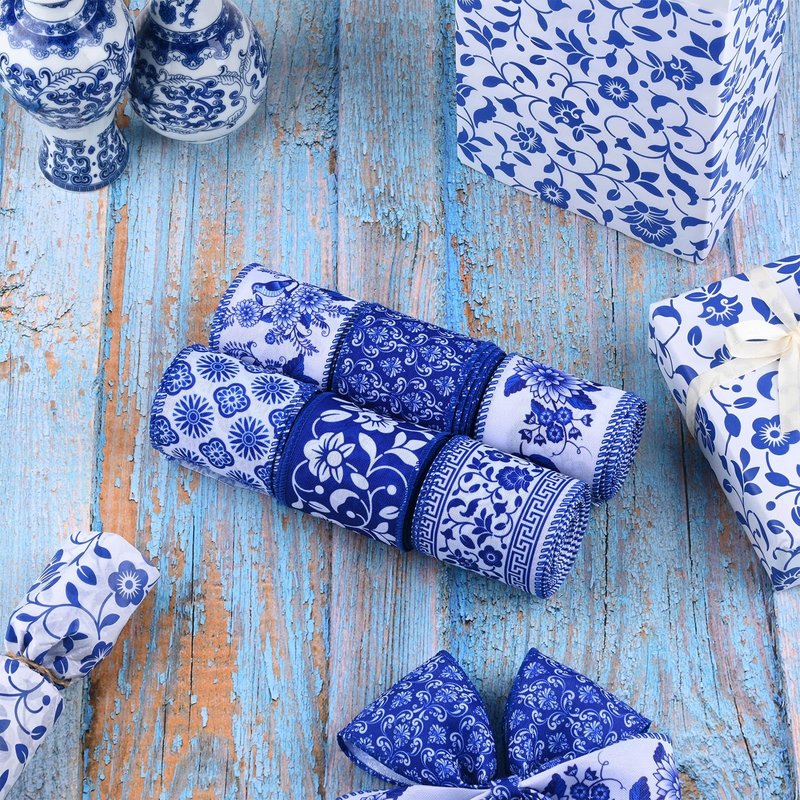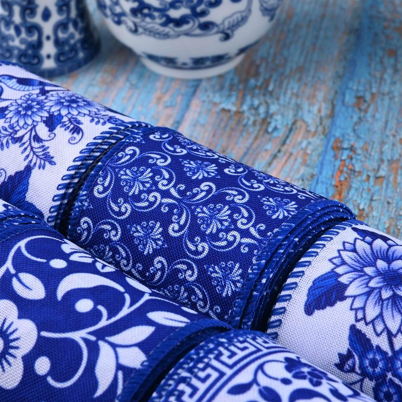 - Unique and exquisite Design: adorn your crafts or decoration with wired ribbon for wreaths inspired by the blue and white porcelain series; Each ribbon incorporates an elegant pattern of flowers and birds, symbols of traditional and classic Chinese aesthetics.