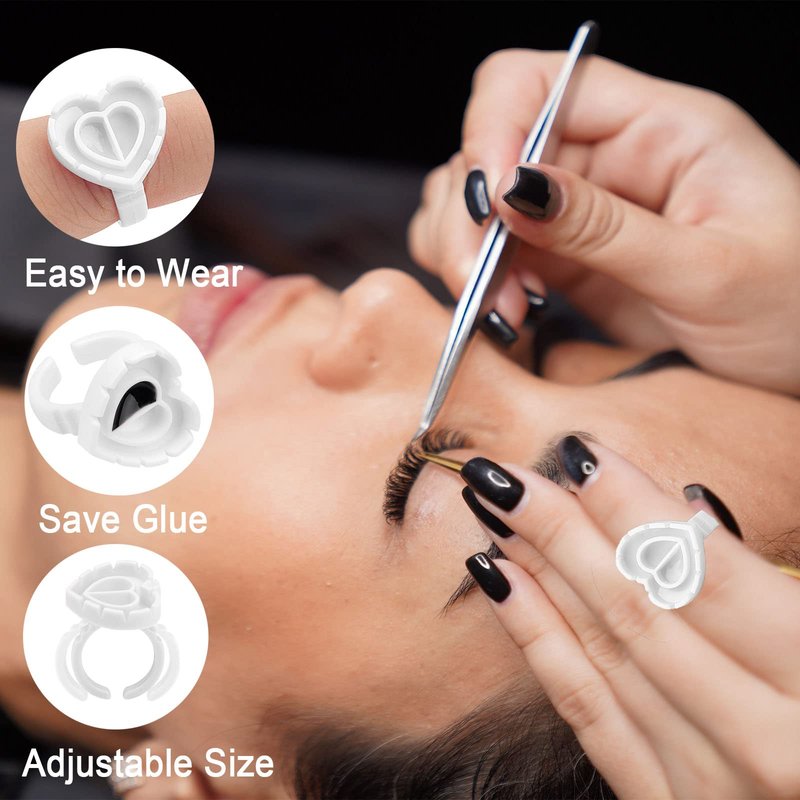 - Volume Glue Ring Easy Lashing Application: drop glue rings, Glue cups are easy for new lash artists. Wear the ring cups on the finger, then drop lash glue into the cups, dip eyelashes into the lash glue and wipe extra glue by the V breaches. a perfect fan-shaped eyelash is created. Eyelash glue holder save lots of time when mapping eyelash and increase lash artist lashing speed. The smart lash glue rings for lash extensions are disposable, clean, cost-effective, portable, easy, and convenient.