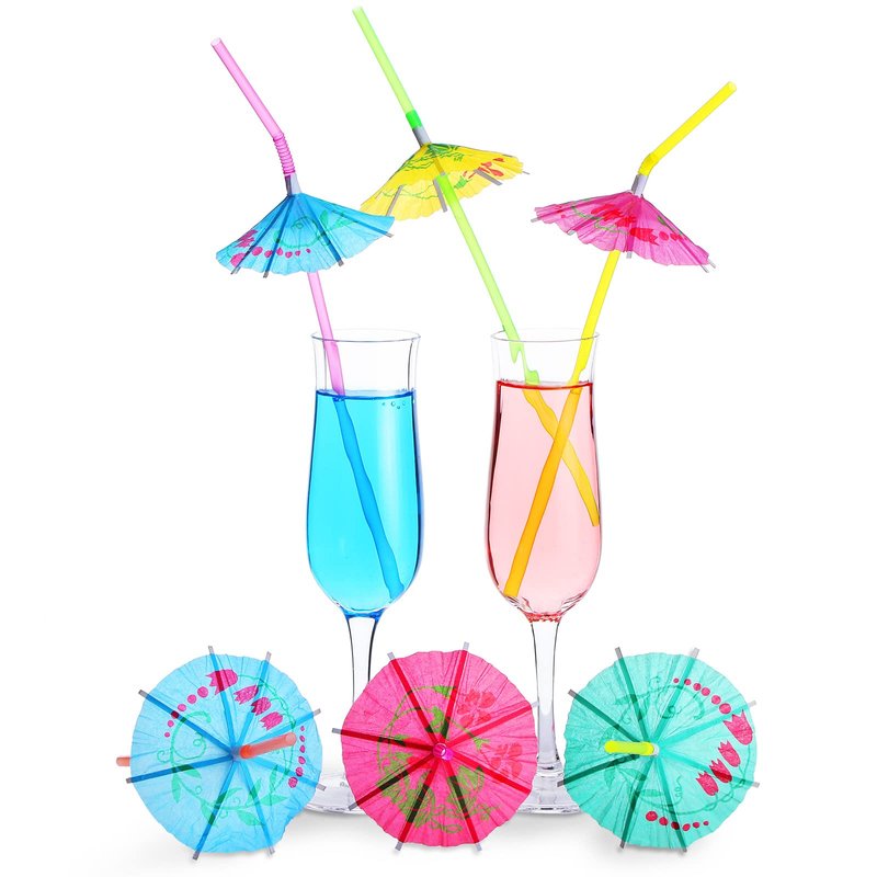 - Safe Material: these umbrella cocktail straws are made of polypropylene (PP), which are reliable, non toxic, odorless and can come in direct contact with your drink; The umbrella decor adopts paper material, please do not get it wet with water to avoid damage; The upper end of the straw can be bent, allowing you to change its bending degree for different drinks