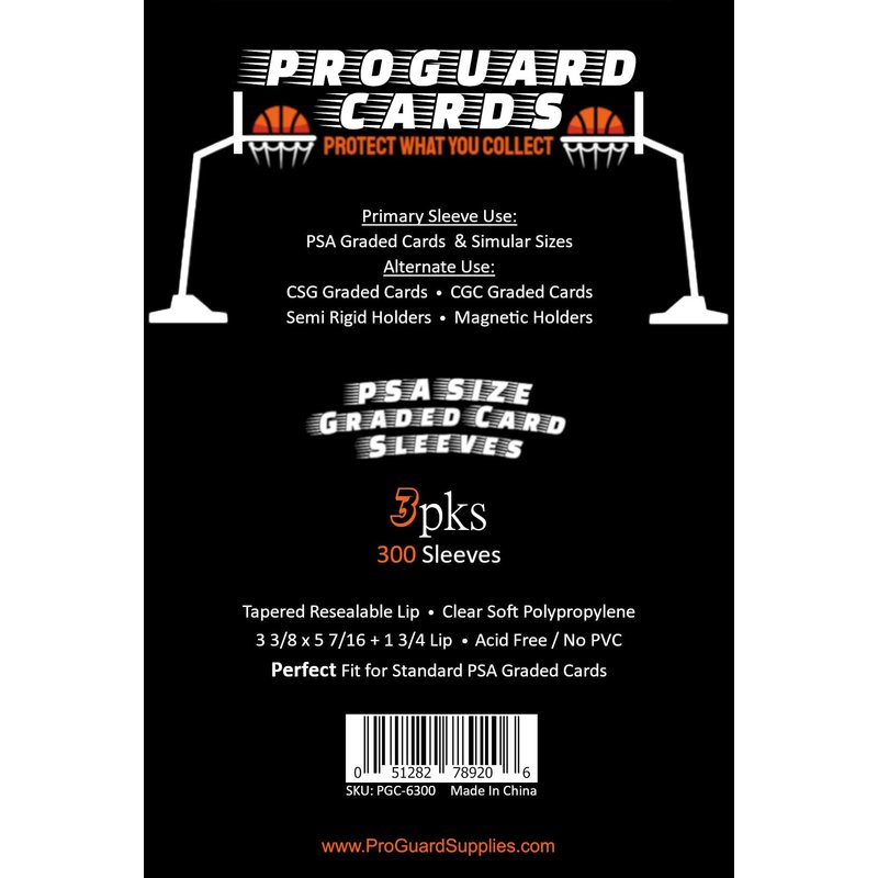 Brand New Perfect Fit PSA Graded Card Sleeves 100 Sleeves per pack. The only sleeve you need to protect the majority of your slim card cases. High quality 2mil polypropylene from ProGuard Cards. We strive to only bring high quality products to the marketplace.