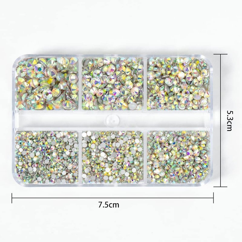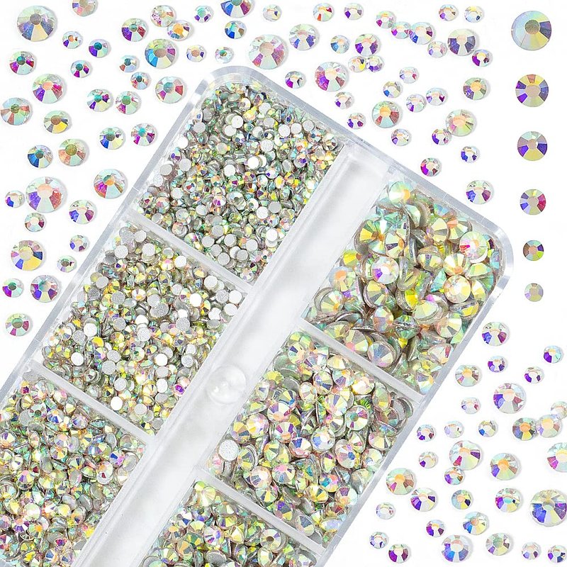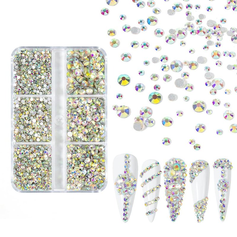 Nail crystal rhinestone, nail jewelry AB rhinestone set of about 3000 pieces of nail crystal rhinestone, with 1 piece of tweezers, 1 piece of rhinestone penRhinestone pen and clip diamond tweezers can help you easily pick nail jewelry design, nail art DIY crafts withFlat back AB crystal rhinestone set, 6 sizes of AB color rhinestones are 1.8mm, 2mm, 2.5mm, 2.8mm, 3mm, 4mmMixed sizes can be matched with different nail art decorationsRound nail art diamond rhinestones can be fixed with sticky diamond glue or nail art rhinestone glue (glue is not included in the package)Nail crystal gems for nail art, also can be used for DIY crafts rhinestones (nail art design, bags, phone cases, clothing, body art, greeting cards, etc.) to meet different art design needs