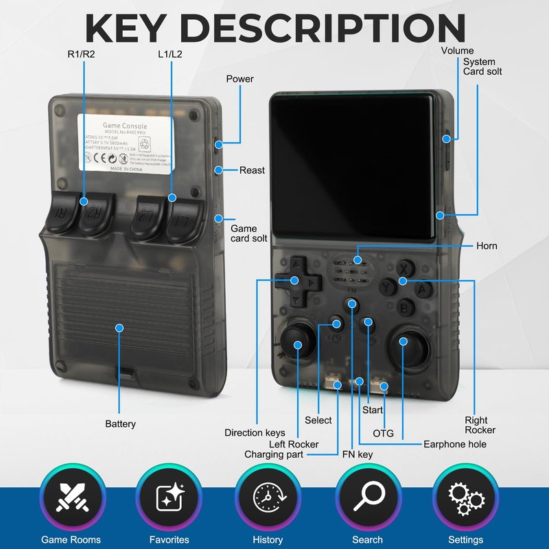 - 【Powerful Performance】 1.5GHz 64-bit RK3326 processor, Mali-G31MP dual-core GPU, and 8GB RAM; the new operating system offers a smoother and more responsive experience. Pre-installed with over 15,000 games, it supports more than 12 mainstream emulators, and the 256GB expandable memory allows for adding even more games.