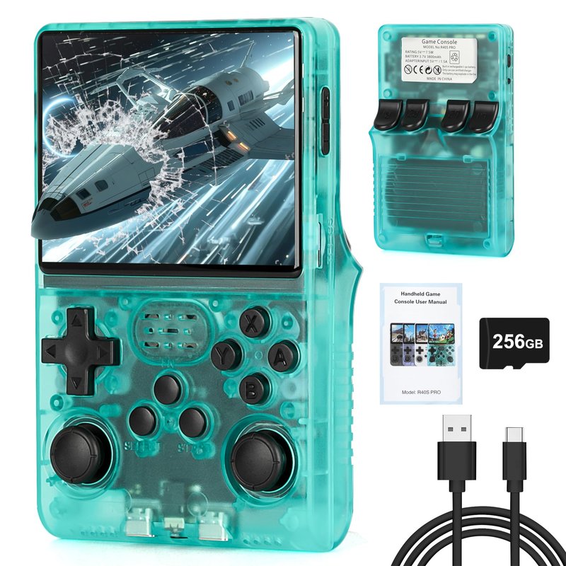 【30000 in 1】 R40S Pro Retro Handheld Game Console, Video Game Console, 3.5 inch IPS Screen, More Than 20 Emulator, 256G TF Card (Green)
