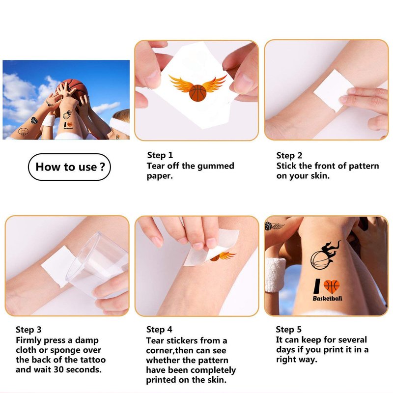 - Package of 300 Basketball themed temporary tattoos with more than 60 designs(Basketball, Motivational saying, Basketball hoop and so on).