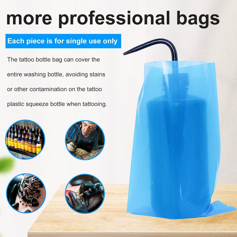 - 🌈[Safety and Hygiene]: Back and aerosol pollution during the cleaning of the tattoo area will enter and contaminate your Wash Bottle. These bags will cover your entire Wash Bottle and can help maintain a safe working environment for tattoos. Prevent other adverse effects caused by tattoo ink.