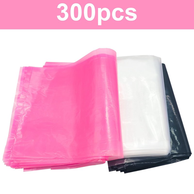 - Packing and size: there are 300 disposable tattoo bottle bags in the packing, 100pcs transparent. 100pcs Black and 100pcs pink measures 8.7 inches by 5.5 inches (22 centimeters by 14 centimeters) . These disposable tattoo bottle bags are designed for cleaning bottles and are suitable for most sizes.