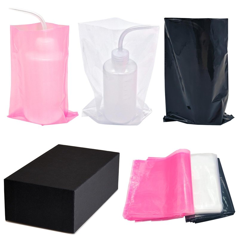 300pcs Tattoo Wash Bottle Bags,Thicken Disposable Squeeze Bottle Bags,for Tattoo Bottles Tattoo Supplies Tattoo Kits (Pink, Black, Transparent)