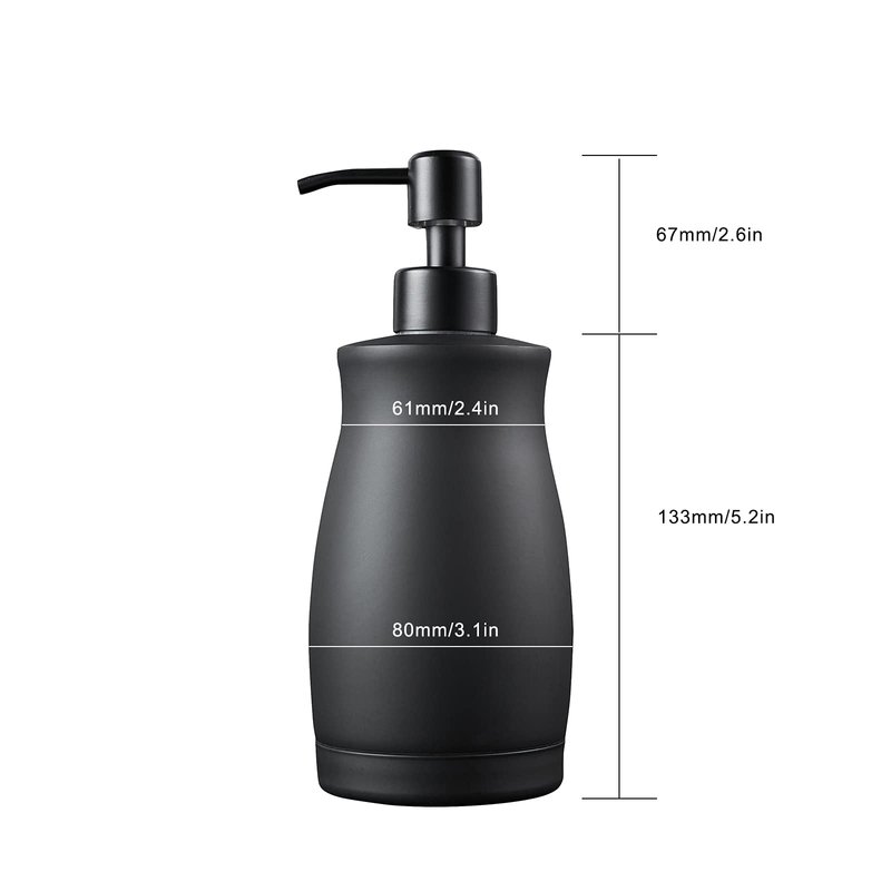 - [HIGH QUALITY]: The soap dispenser is made of commercial grade 304 stainless steel, which is durable and reliable. The special black coating makes it resistant to corrosion and rust. The pump head and bottle body are also made of stainless steel, and the pump head has a built-in soft seal to prevent detergent leakage.