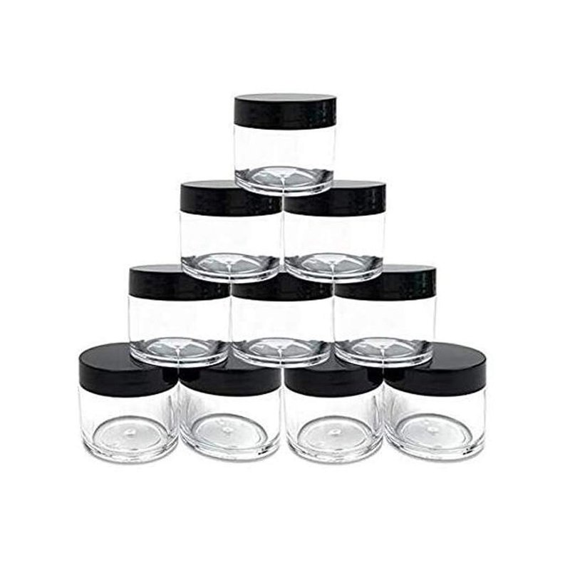 30g 30ml/1oz Refillable Black and White Plastic Screw Cap Lid with Clear Base Empty Cosmetic Jars for Nail Powder Bottles Eye Shadow Container Lot Powder Storage Container (Pack of 10) (Black Lid)