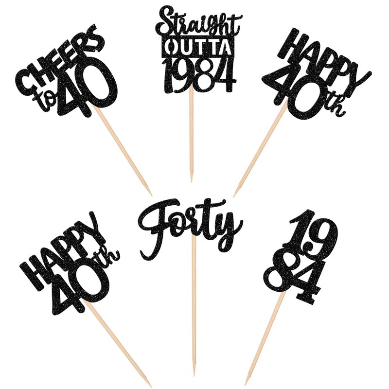 30PCS Black 40th Birthday Cupcake Toppers Glitter Forty Happy 40th Straight Outta 1984 Cupcake Picks for Cheers to 40 Years 40th Birthday Wedding Anniversary Party Decorations Supplies