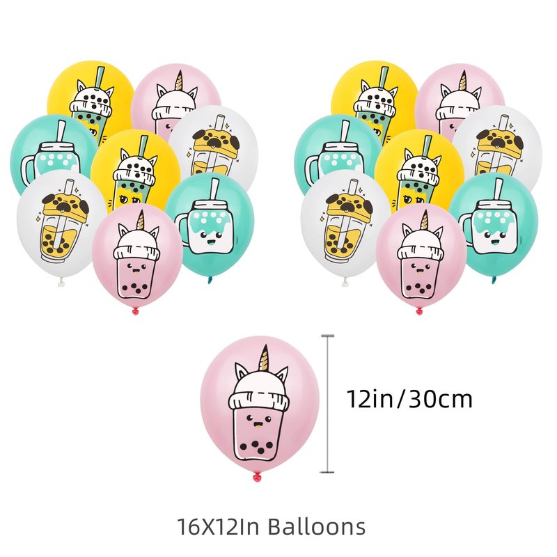 - 【Boba Tea Party Supplies】Boba tea style birthday decorations include 1 happy birthday banner, 1 cake topper,12 cupcake toppers,16 latex balloons.The super large set meets your decorative needs.