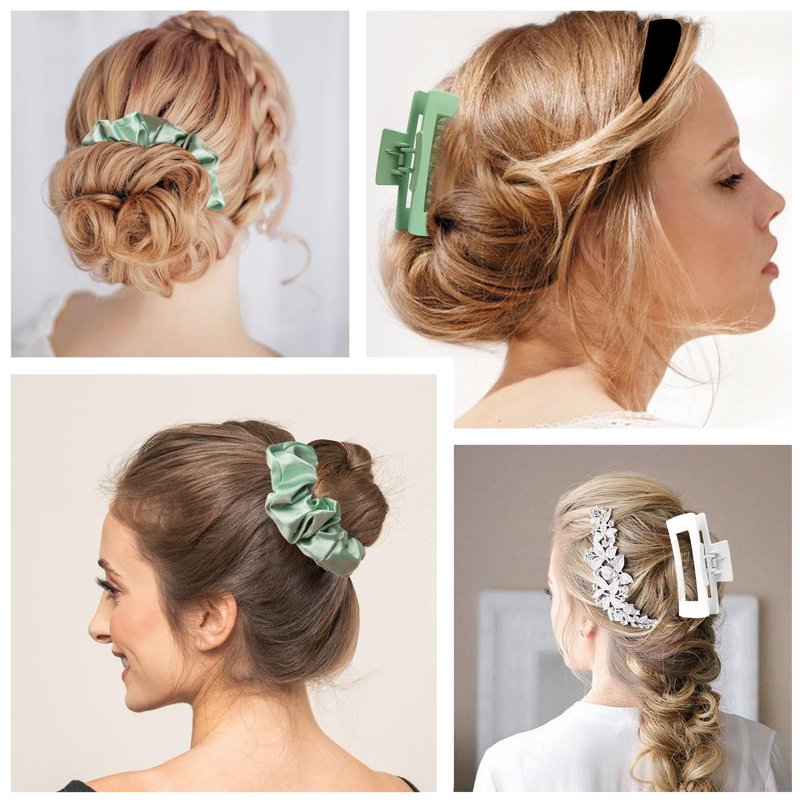 - ELEGANT & DURABLE HAIR ACCESSORIES - Each claw clip is designed with a chic French square style, perfect for both thick and fine hair, ensuring a secure hold for every bridesmaid’s hairstyle. The scrunchies, in a beautiful green hue, are soft and stretchy, while the hair claws are durable, making them ideal for weddings, bachelorette parties, or even daily wear.