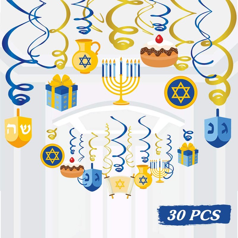 30PCS Hanukkah Decorations Hanging Swirls - Holiday Chanukah Party Supplies Favors Ceiling Decor