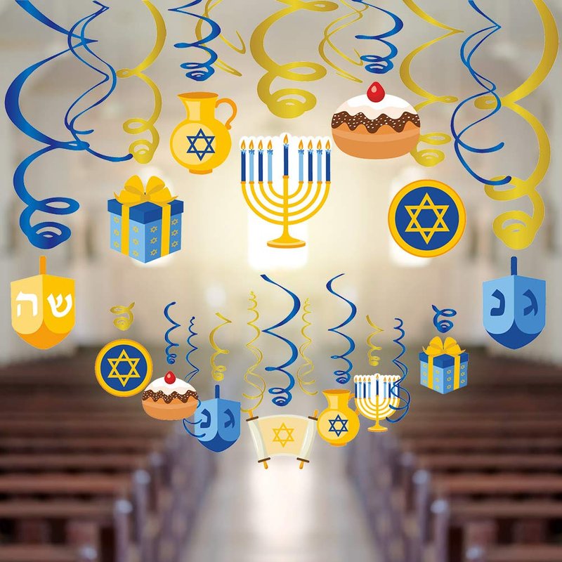 - You can hang from walls and the ceiling to add style to your party,and coordinate with other Hanukkah themed party supplies and solid colored party decorations to create a completely festive atmosphere.