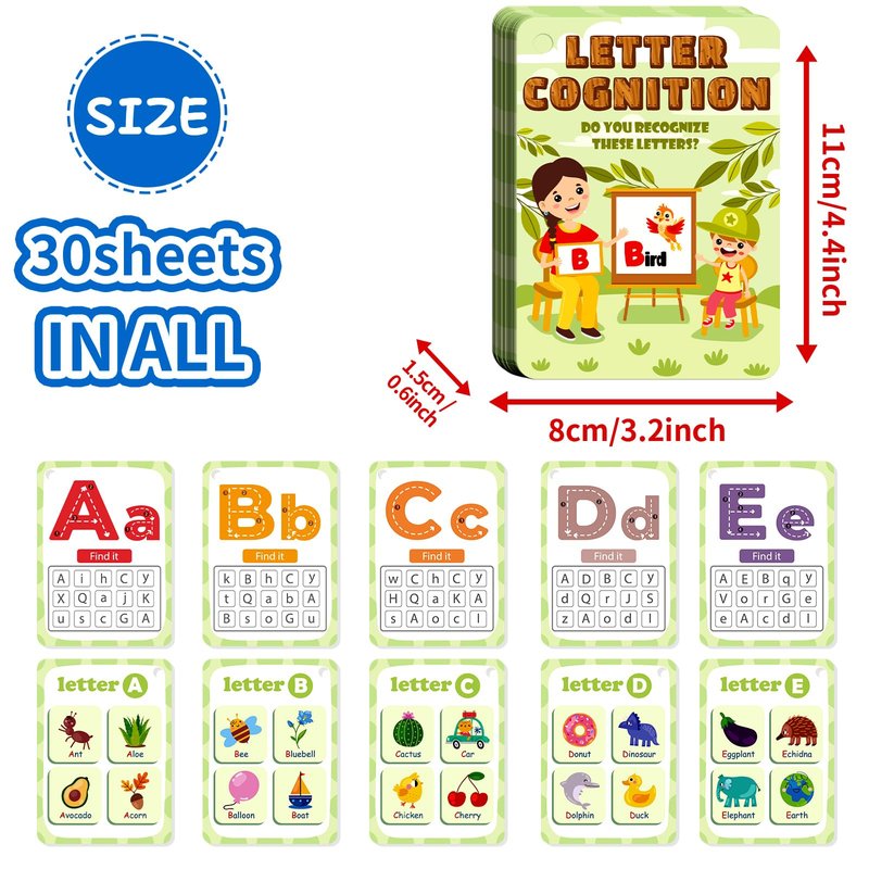 - EDUCATIONAL AND FUN: This reusable letter cognition flash card contains 30 different alphabet cards .Featuring bright and colorful images, These portable alphabetic flashcard is great tool for early learners.