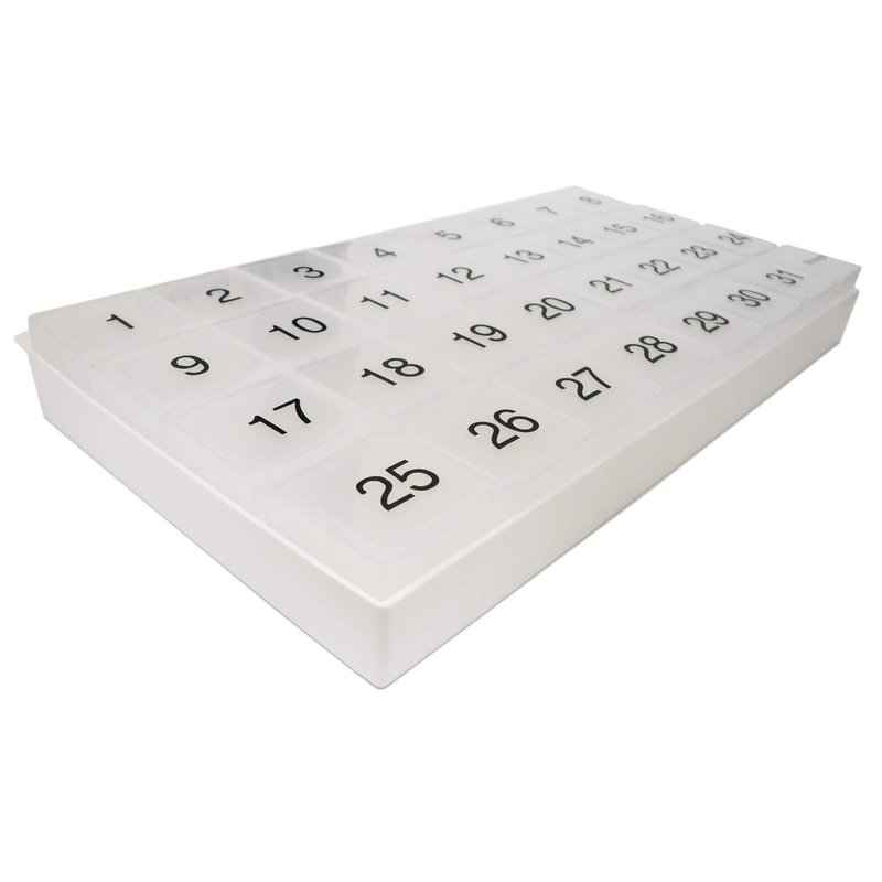 - FULL MONTH ORGANIZER - 31 compartments plus an extra storage compartment allows you to organize your pills for an entire month.
