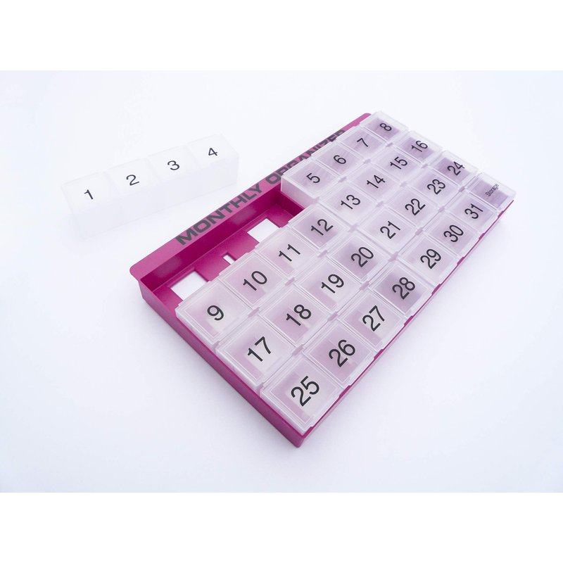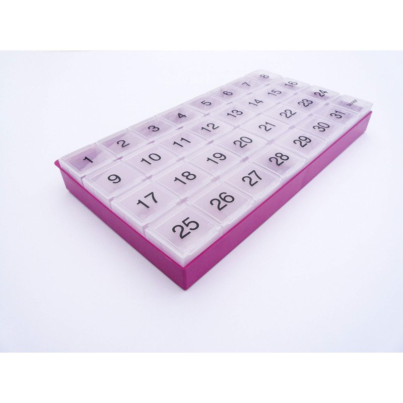 - FULL MONTH ORGANIZER - 31 compartments plus an extra storage compartment allows you to organize your pills for an entire month.