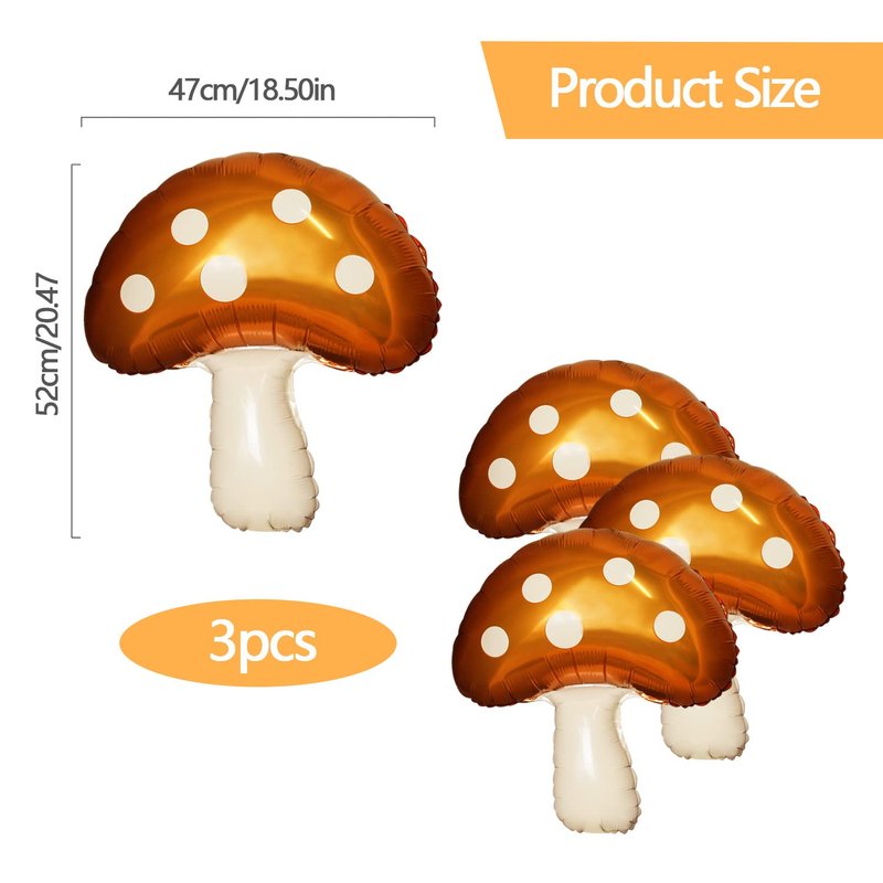 - PACKING INCLUDE - There are 3 mushroom foil balloons with adorable color and shape, allowing you to set up a lovely forest theme party scene, suitable for outdoor and indoor occasions.The balloon cannot float with air, it can only float when it is filled with HELIUM.
