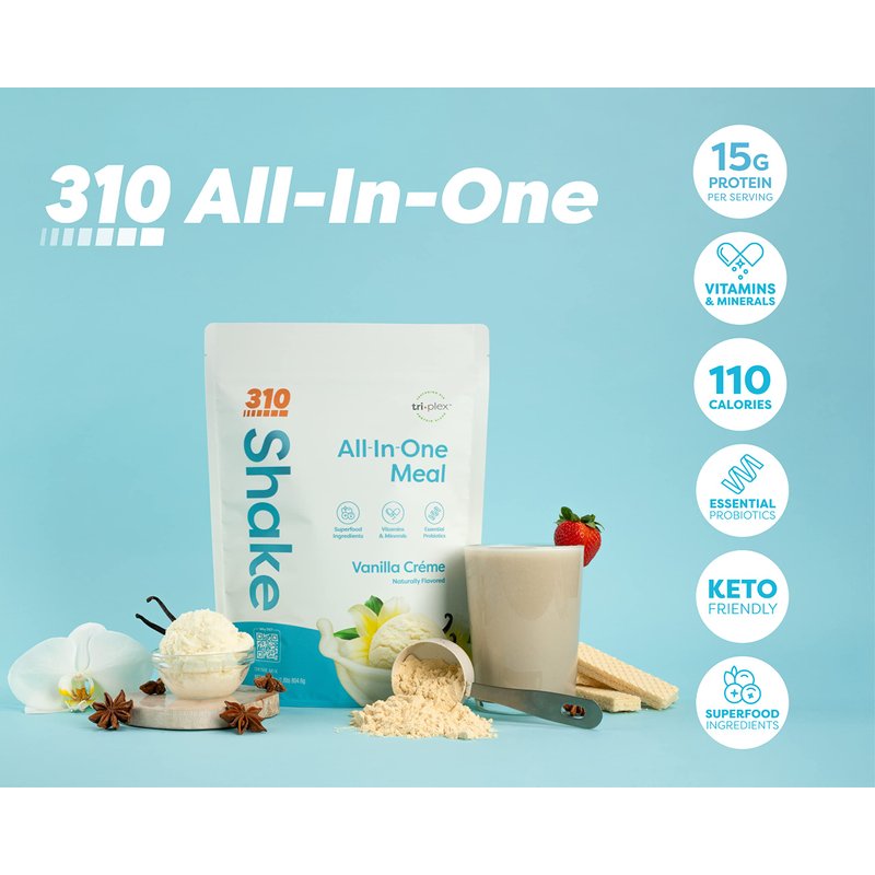 310 Nutrition - All In One Meal Replacement Shake - Superfood Blend with Fiber - Natural Sweeteners - Low Carb Shake, Keto & Paleo Friendly (Vanilla Crème, 14 Servings)