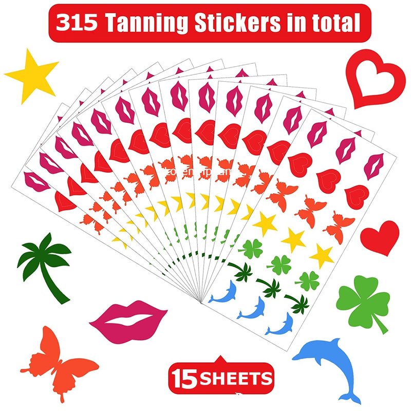 - [Package includes:] The package contains a total of 315 body stickers (15 sheets with 21 pcs each sheet) for tanning. These stickers can be used to create various designs on the body.