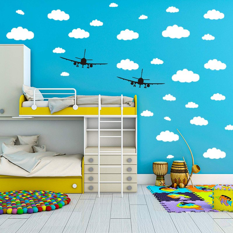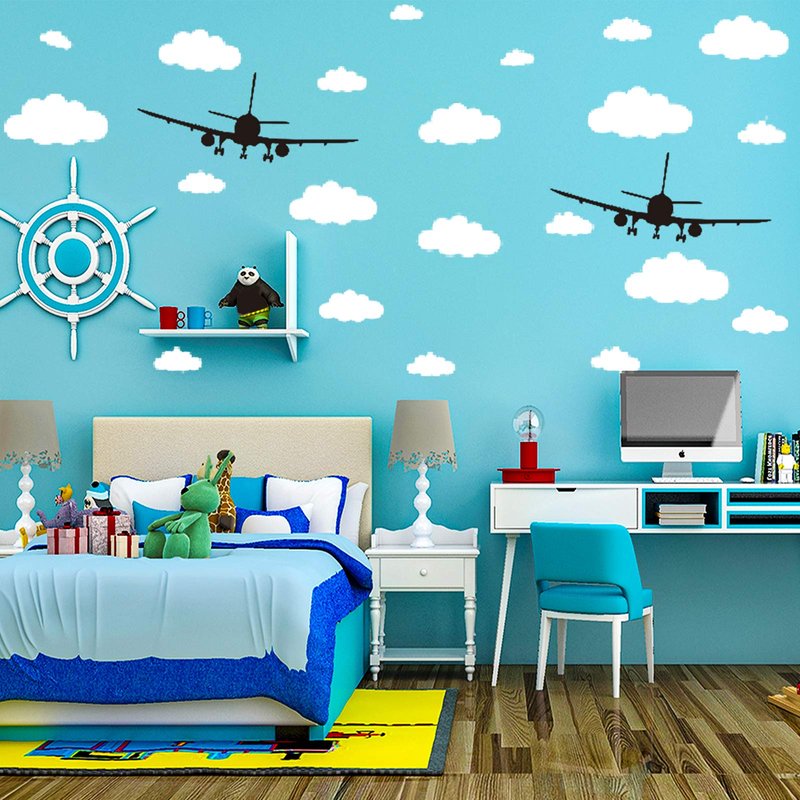 The white clouds wall stickers are the perfect backdrop to airplanes