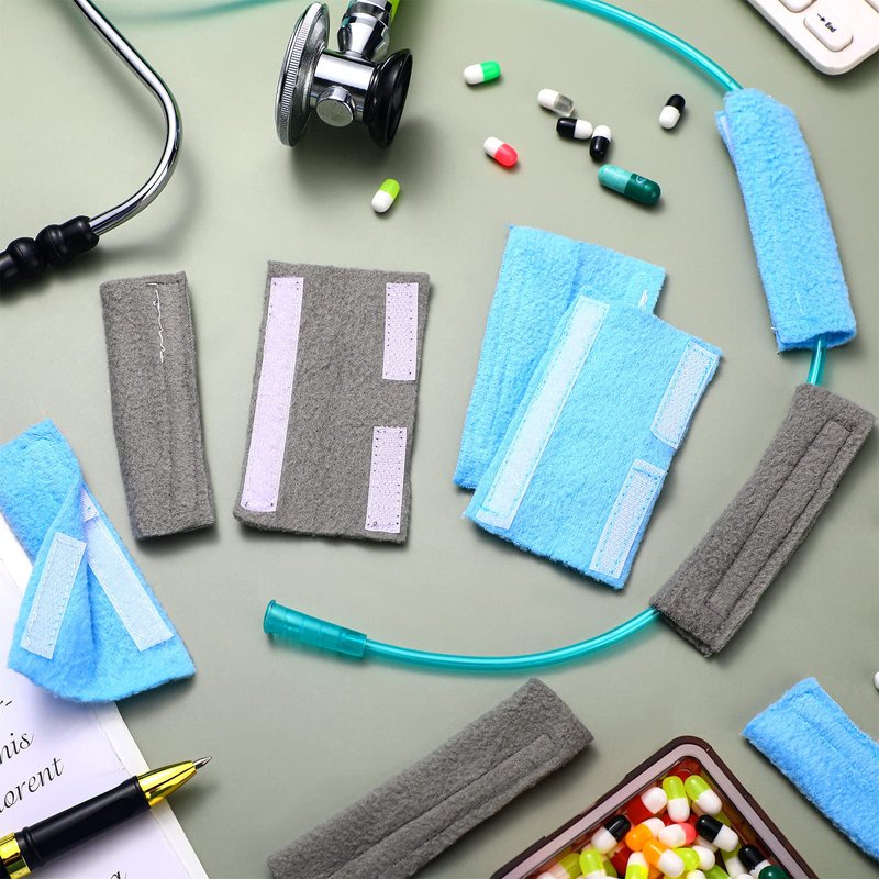 Features:These tube padding are compact and portable, which will provide you with comfort when you lay on the bed, allowing you to feel better.Each oxygen ear pad measures approx. 5 x 9 cm/ 1.97 x 3.54 inches (unfolded size), the proper size is suitable for most tubes of different sizes.Specifications:Main material: fleeceMain color: grey and blueSize: approx. 5 x 9 cm/ 1.97 x 3.54 inches (unfolded size)Package includes:32 x Oxygen cannula ear cushions (16 pairs)Notes:Manual measurement, please allow slight errors on size.The color may exist a slight difference due to different screen displays.