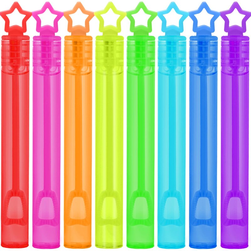 - Colorful Star Bubble Wands: includes 32 small star-shaped bubbles in 8 eye-catching vibrant rainbow colors - red, pink, yellow, green, orange, purple, blue, and dark blue. Easily kept the kids occupied with bubbles for a few hours.