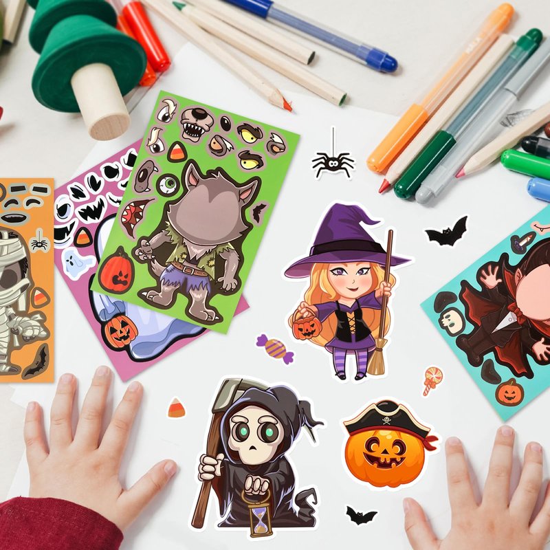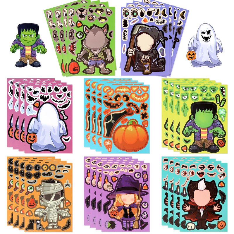 32 Sheets Halloween Stickers for Kids Make A Face Halloween Stickers DIY Art Craft Rewards for Boys Girls Halloween Party Favors Supplies Craft