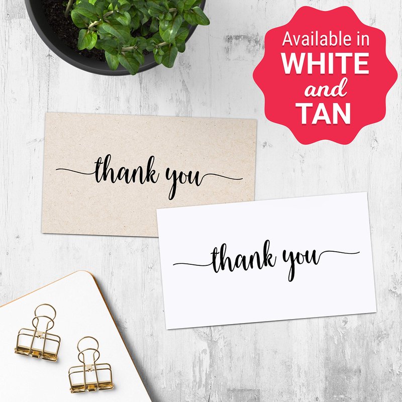 321Done Thank You Notecards Small (Set of 50) Business Card Size 3.5" x 2" - For Gifts, Parties, Weddings, and Any Occasion- Made in USA - Kraft Tan