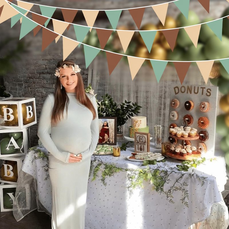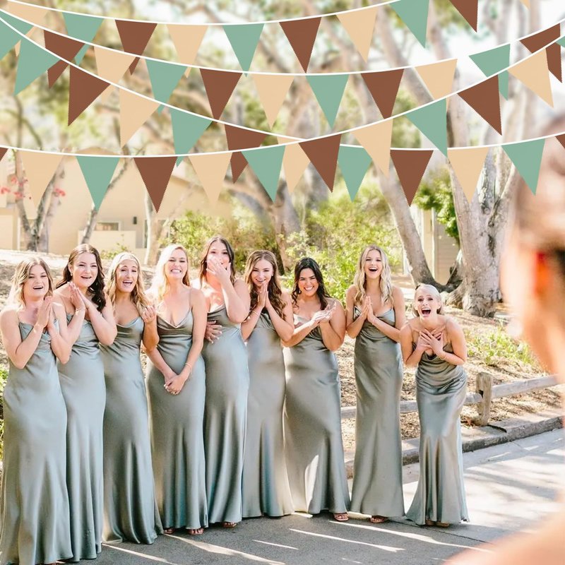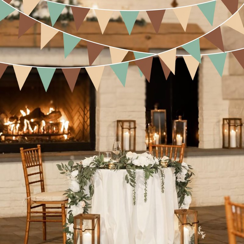 • Package Including:1 pack green brown fabric bunting banner garland in sage green, brown and light brown colors, with 36pcs flags in 10M/32.8Feet. Flag Size: 5.5in width x 7in height.