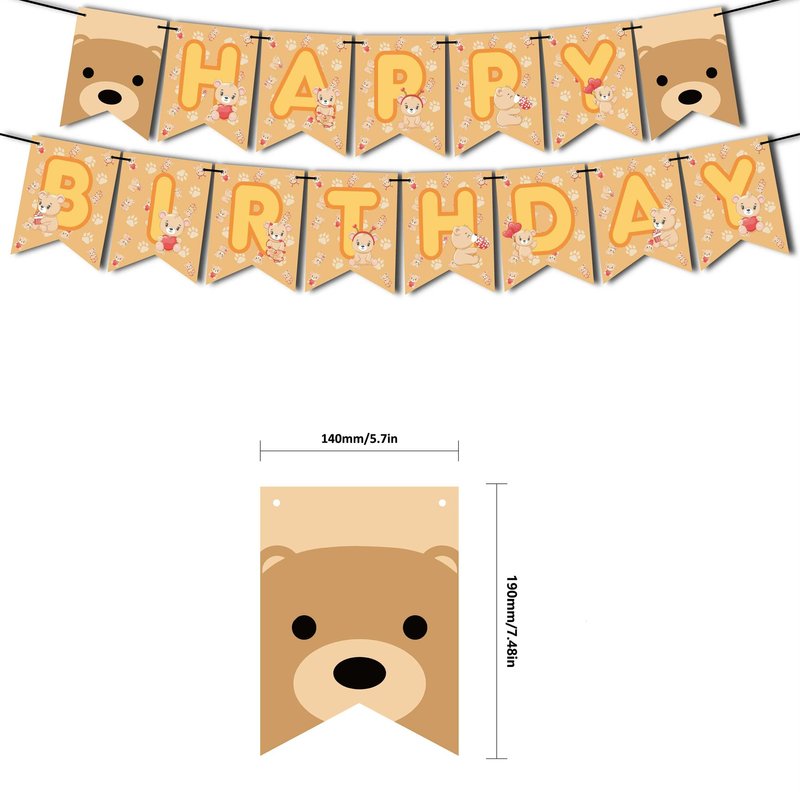 - Bear Birthday Party Decorations Kit: Package includes 1 x birthday banner, 1 x big happy birthday cake topper,18 x latex balloons, 12 x cupcake toppers,have a cool party for kids.