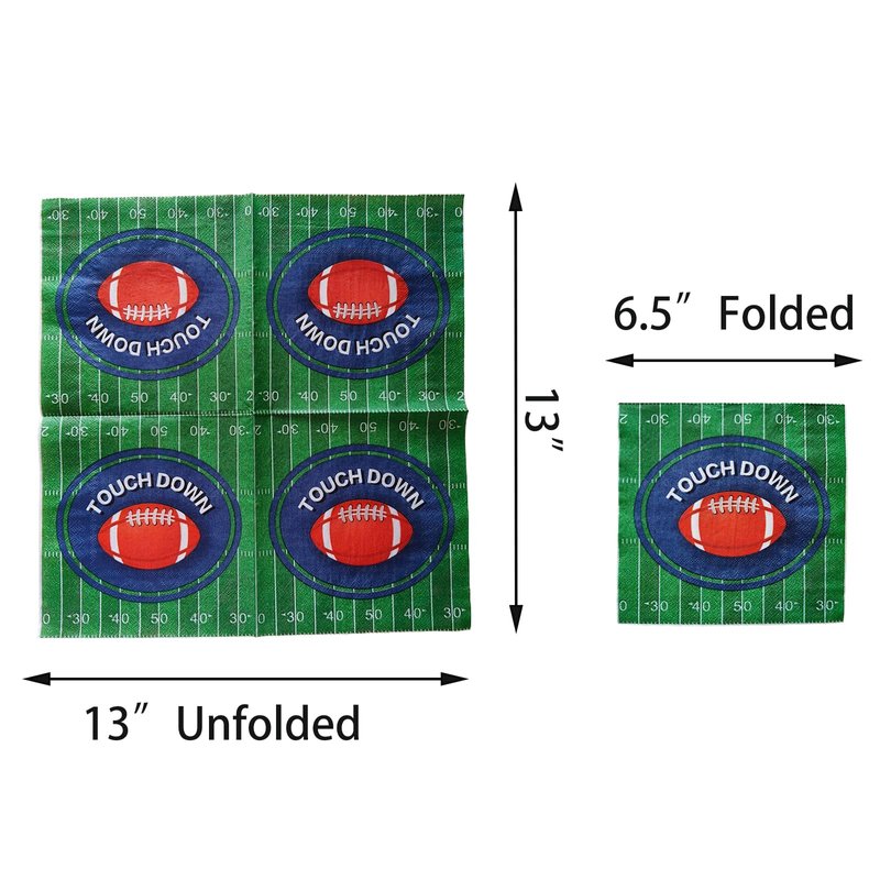 - 3. Application: Put This Football Napkins Place near the self-serve buffet table, cake table, sweets and treats table, hot chocolate, coffee and tea or at each table using a napkin holder or napkin dispenser. Complete the look with matching birthday party tableware.These party Napkins will make your table settings look fantastic and all your guests will be happy.