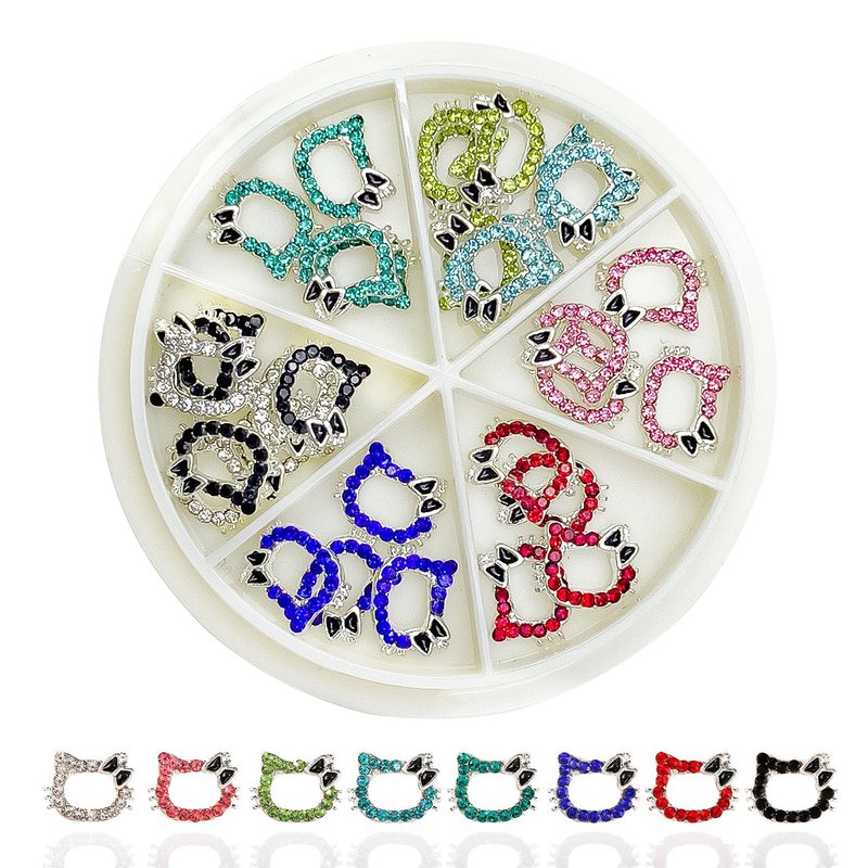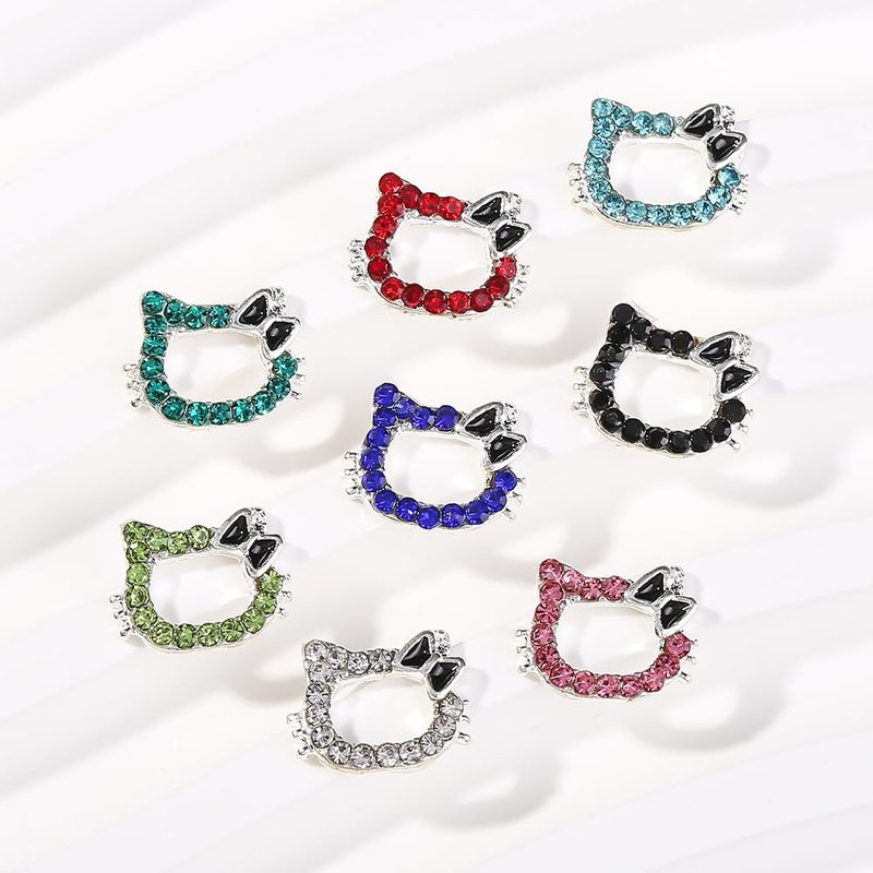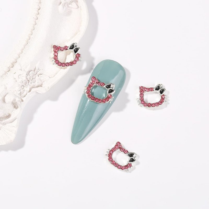32PCS Kawaii Nail Art Charms Bling Kitty 3D Cute Metal Rhinestone Crystals Making Ornament Nail Decoration Accessories for DIY