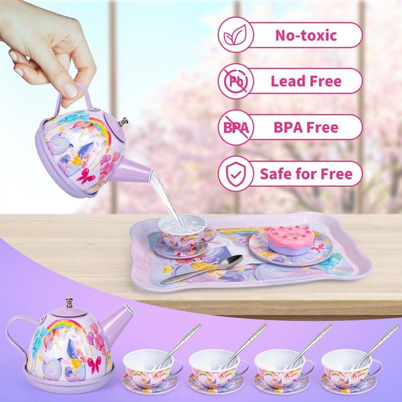 - šćGreat Gifts for KidsćUnicorn tea party set is the perfect gift choice when you are choosing birthday gifts, Christmas gifts and New Year gifts for your children. It will be the perfect gift to keep your little girl entertained for hours! Hosting a tea set party provides kids with another source of screen-free fun.