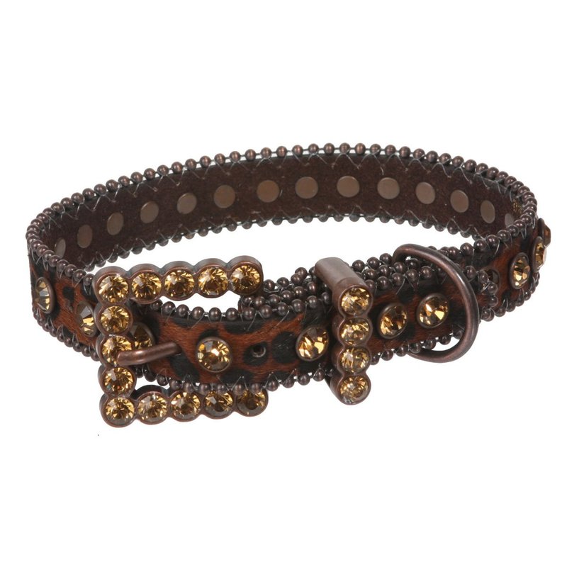 3/4" (20 mm) W Faux Zebra/Leopard Fur Rhinestone Dog Collar Size: XXS: 5"-7" Neck Color: Brown Leopard