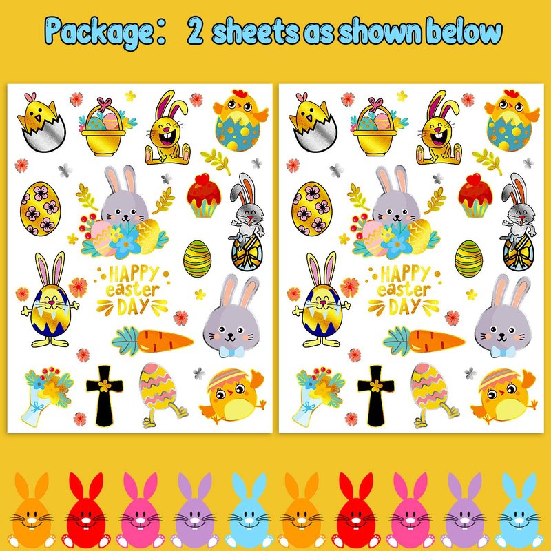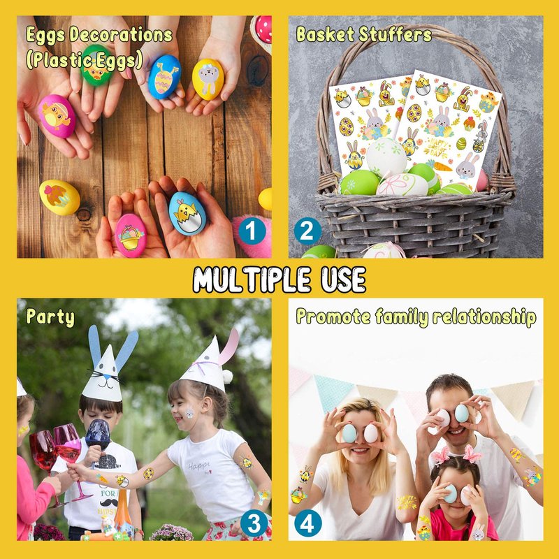 - 【Applicable Place】The temporary tattoos are suitable for Easter party supplies, party favors, decorations, accessories, reward for kids, great for kids to share with friends, DIY decorations and so on. You can also apply them to your body or some smooth objects, such as glass, tile, water bottle, paper, stainless steel, plastic, mobile phone case and so on.