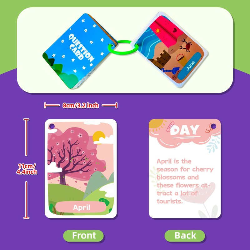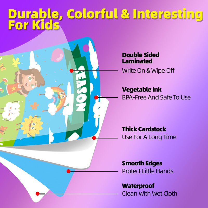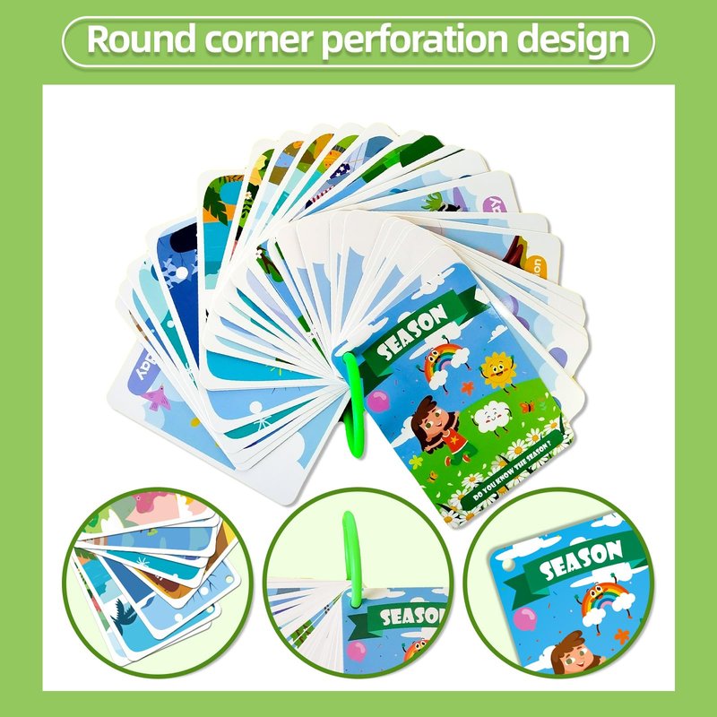 - 🍓【PORTABLE WATERPROOF FLASH CARDS FOR CHILDREN】:These season cognition flashcards are made of laminated material, which is waterproof and easy to clean. They are lightweight and portable, and come with an easy-open ring to hold them together. making them convenient for children to carry and use anywhere.