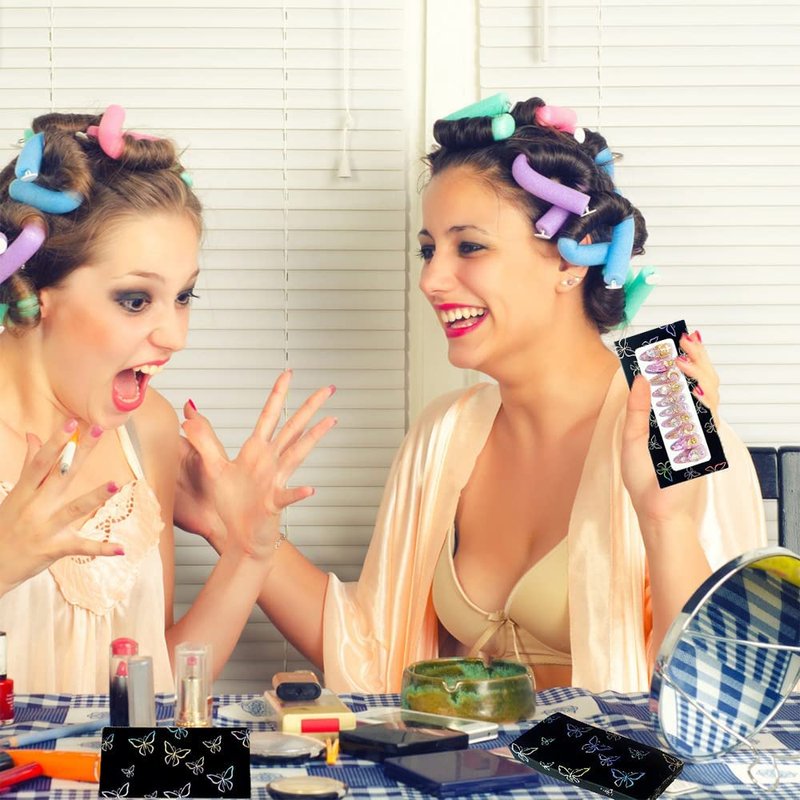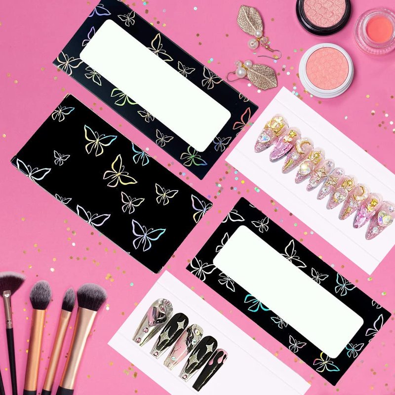 - COMPLETE SET - Get 35 reusable butterfly design nail package boxes, 35 white cardboard backings and 1 roll double-sided tape