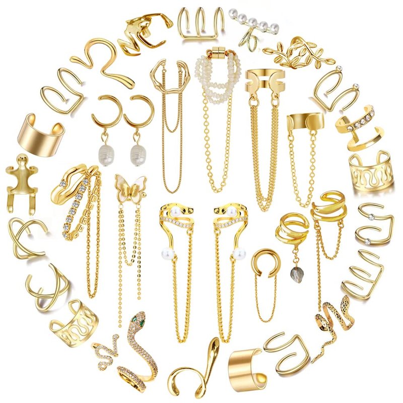 - 【Order content】: 35 pcs of earrings in different styles. There are claw study ears, ear cuffs, cartilage clip on ears, tassel ears, and chain ears. These earrings are very personal. You can use it with other earrings.