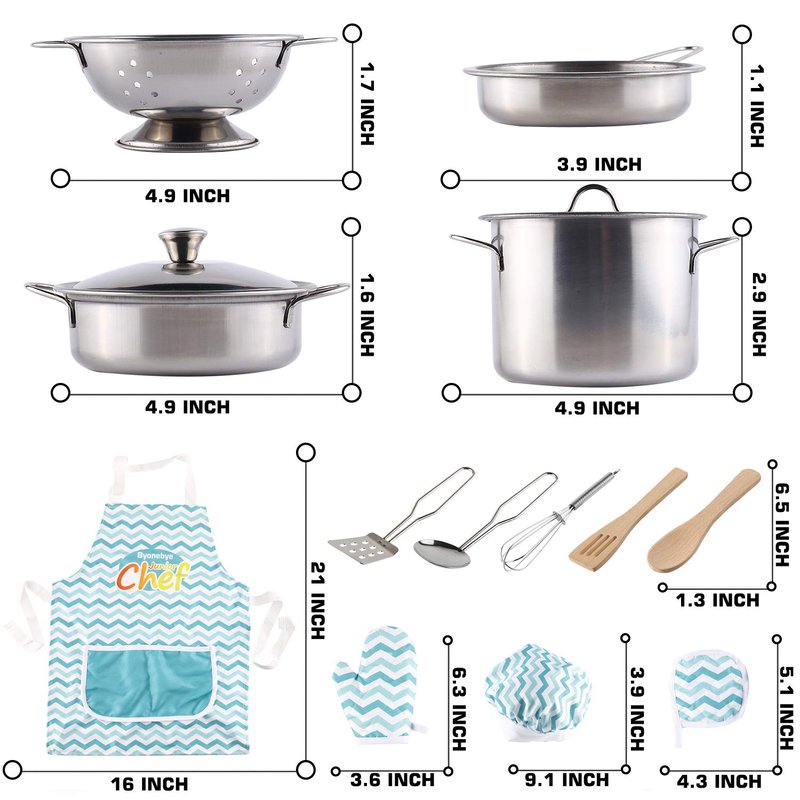 - THE STAINLESS STEEL POT&PAN PLAYSET makes a great gift for girls and boys ages 3 years and up. Perfect for Cooking Chef Pretend Play, Role Play, Preschool Educational Toy, Sensory Toy, Early Development