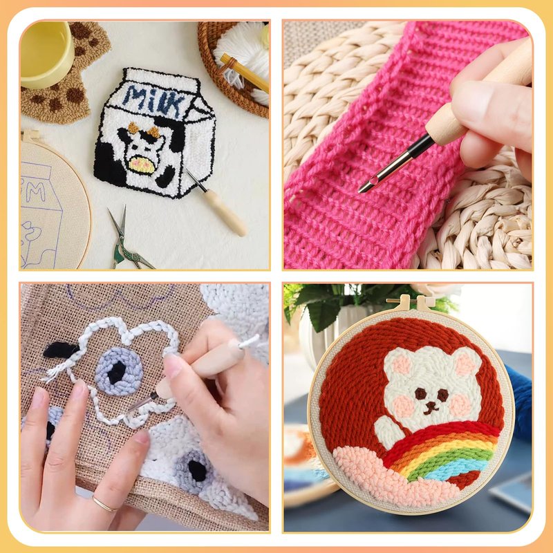 - 【Punch Needle Set Material】The handle of punch needle embroidery kits is made of wood and stainless steel, the needle is made of copper. Smooth face and lightweight punch needle tool is easy to hold and use.