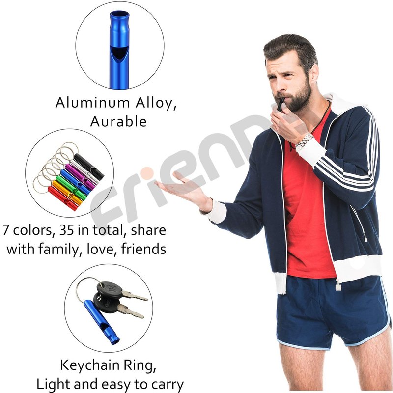 The emergency survival whistles feature aluminum alloy and metal keyring, not easy to break, fade or corrode, safe for people to use.